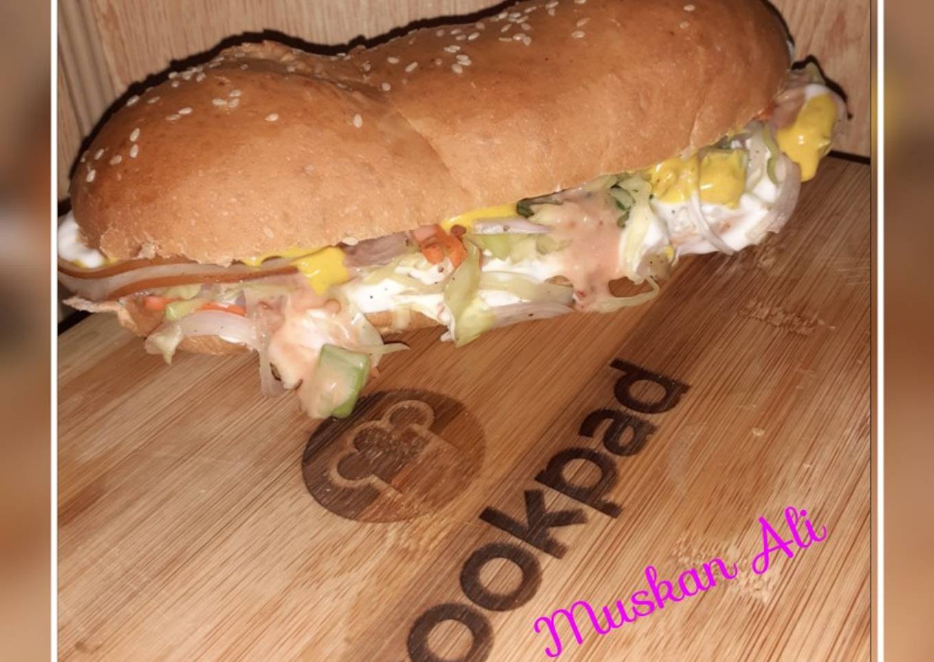 - Add fold chicken blonga slices. Then spread mustard paste. Enjoy Restaurant style American Sub Sandwich.