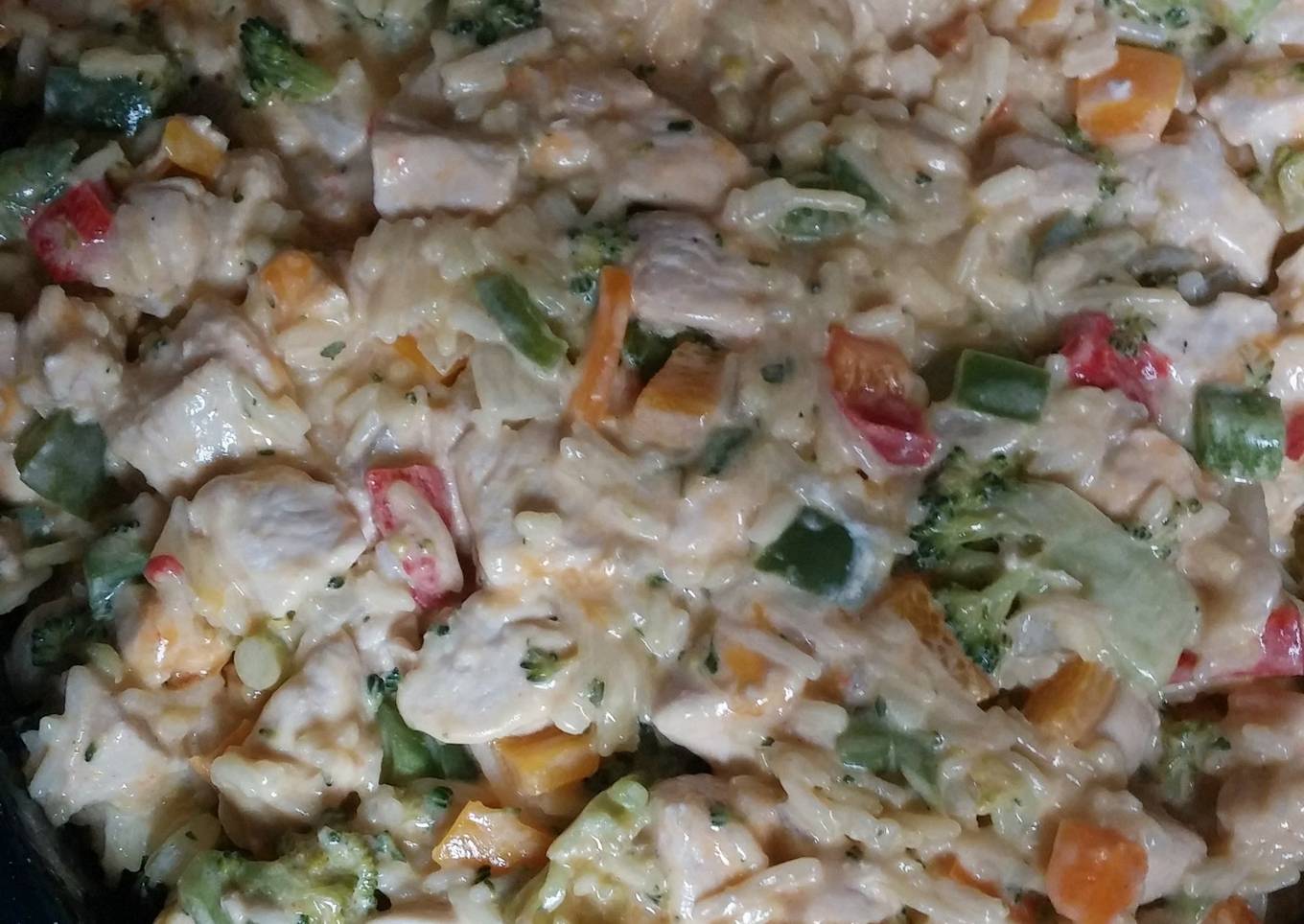 - Next cook all the chicken fully and then put the cooked chicken into a big mixing bowl then cook the veggies. Also by this time the rice should be done add the seasonings before you mix it in with the veggies and chicken.