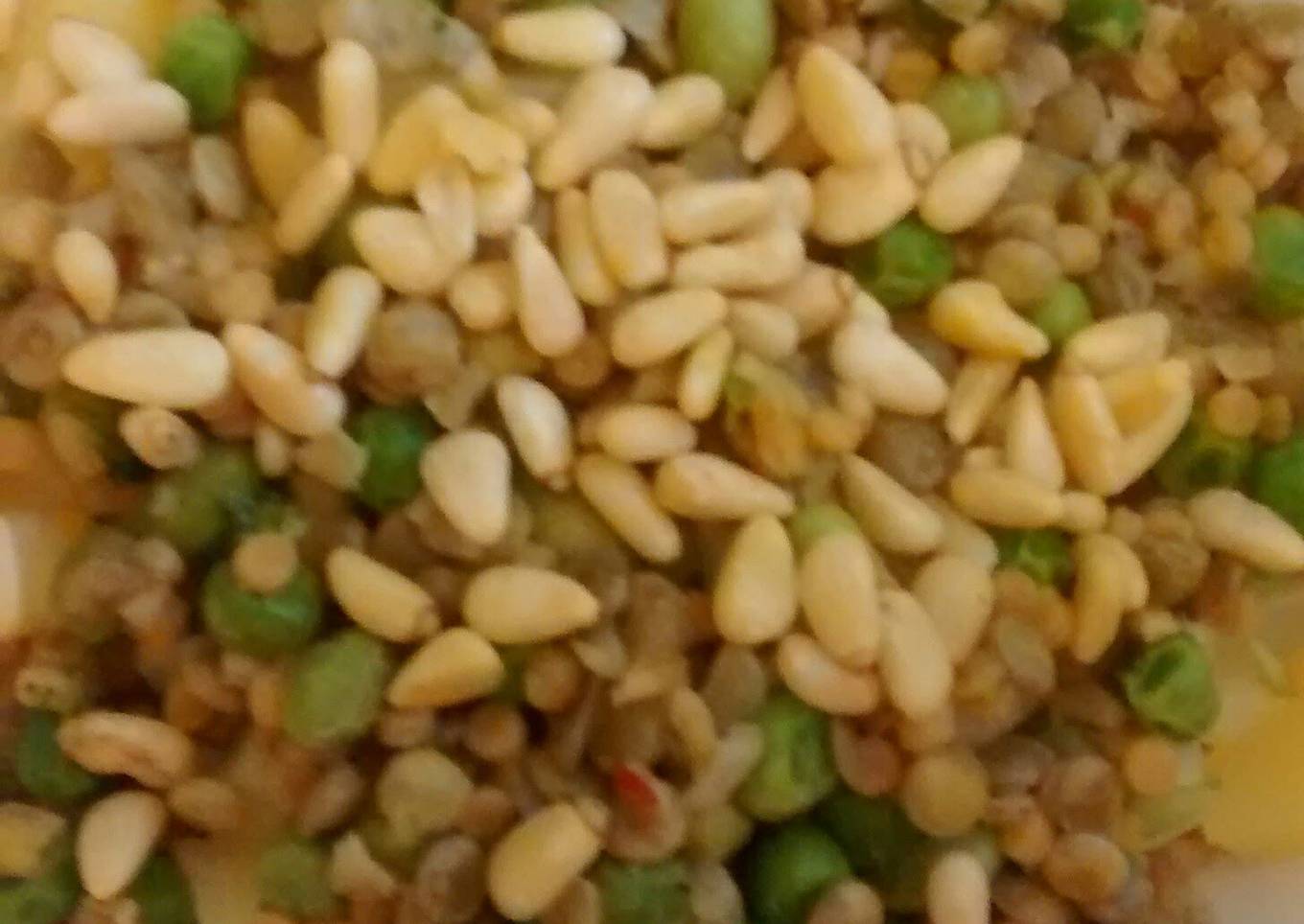 The Protein Blend has whole grains, lentils, peas, broccoli, Edamame in a light garlic sauce.